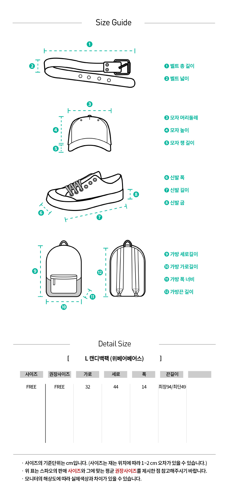 표준사이즈 표입니다.
