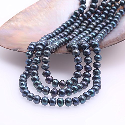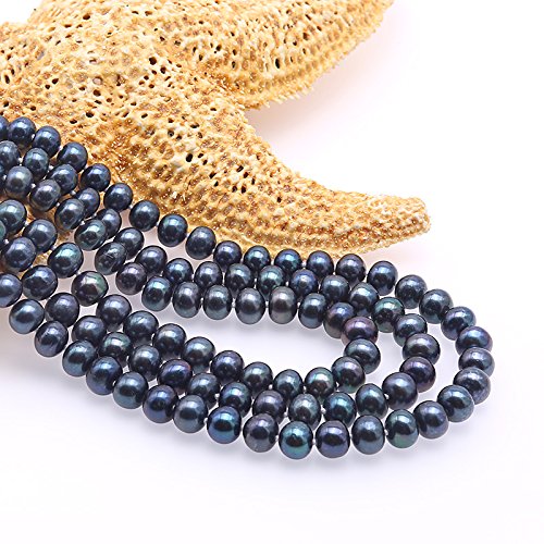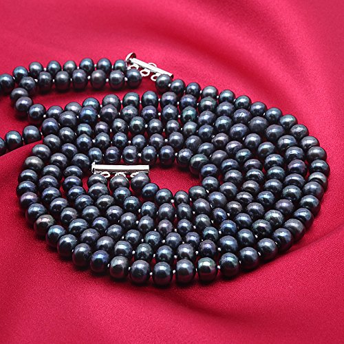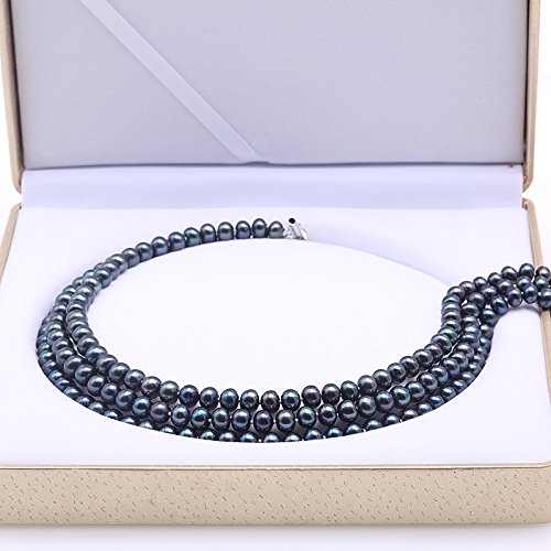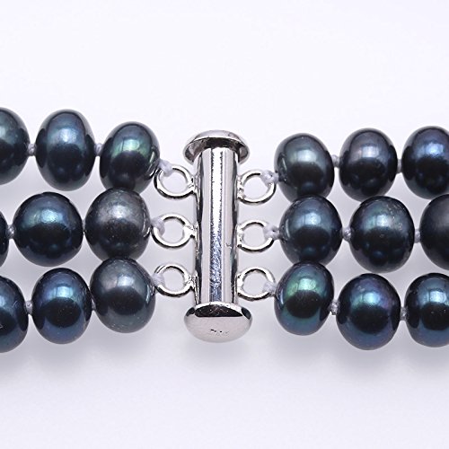 Description *Triple strands freshwater cultured pearl necklace made with 6-7mm flatly round pearls in deep blue shape.