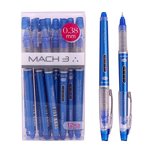 Morning Glory Mach 3 Roller Ball Pen - 0.38 mm-Fine Point Tip (Pack of 12 Pens) (Blue)