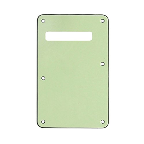 Product Description Feature: * Guitar tremolo back plate or tremolo cavity cover for US Modern Fender Strat Stratocaster style guitar or similar guitar part replacement.* Protecting your guitar and also a pretty decoration.* All materials are environmentally friendly, thermostability, no smell. Multi-layer plates are pressed under high temperature and pressures, to make them close integration between each layer, will not appear curly, deformation, or separation of different layers.* Excellent product process ensure the edge of the smooth and structured.There is protective films on the front of pickguards, anti-scratch to protect the guitar.Specification:* 6 screws holes in the side of back plate.* Material: 3Ply PVC* Color: Mint Green Color* Note:Item's color might be different from the picture because of the aberration.Package Includes:1 x guitar back plate 0