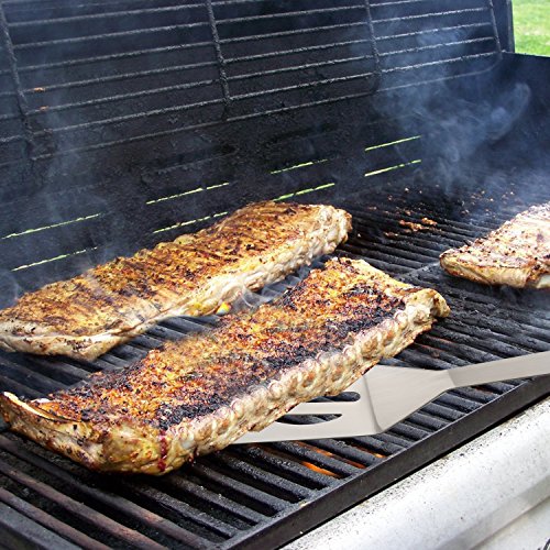 Barbecue Spatula - The beveled edge of the extra thick turner slips cleanly under food. The sturdy elongated handle keeps your fingers away from the flames as you lift easily, even when the spatula is fully loaded.