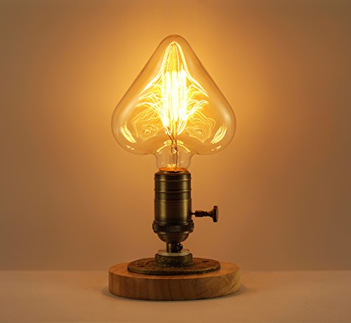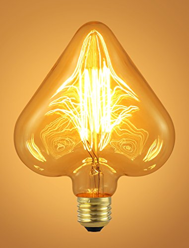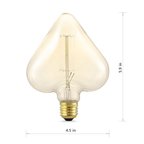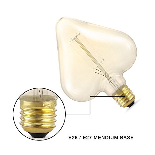 Heart Shape Edison Bulb 40W, (Amber Glass), Adjustable Filament Bulb, Warm Yellow Decorative Light Bulb, for E26/E27 base.
