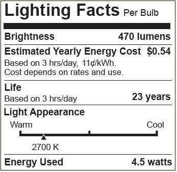 Annual Operating costs per year: ONLY $0.54 per bulb