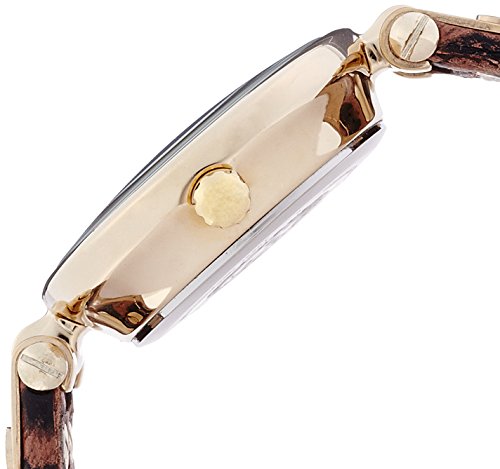 - Feature : Slightly domed mineral crystal; glossy black dial with gold-tone hands and markers; inside minute track / Leopard print leather strap with buckle closure / Japanese-quartz movement / Case Diameter: 26mm / Water resistant to 99 feet