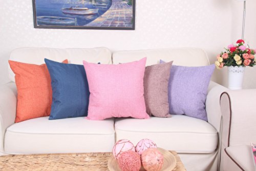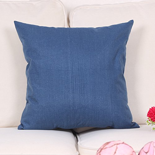 Wenmei Faux Linen Square Square Throw Pillow Case Cushion Cover Throw Pillowse 18in X 18in Double Sided Pure Color (Blue)