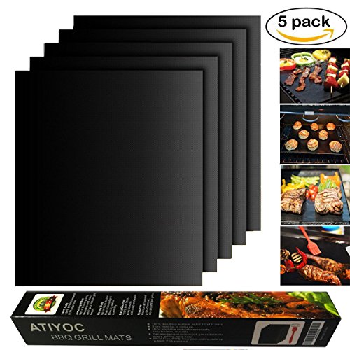 Atiyoc BBQ Grill Mat, Non-stick and Heat Resistant Mats for Charcoal, Electric and Gas Grill FDA-Approved, PFOA Free (5 Pack)