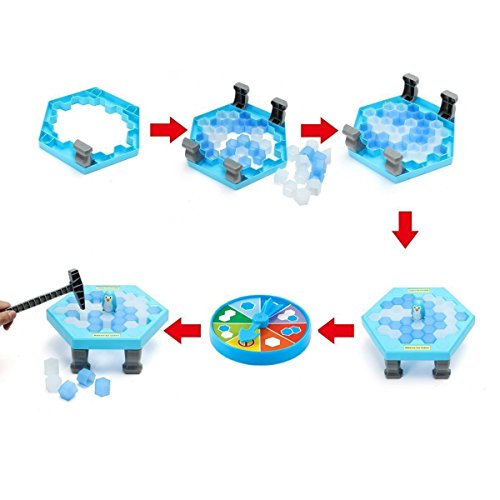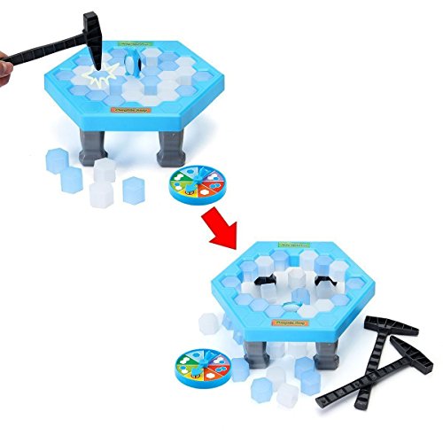 Studio : dOvOb Publisher : dOvOb Product Description How To Play This Game: Don't fall into the trap of the opponent! See who can get the final victory! Each player takes turn to roll the spinner and take down one block per the color shown on the spinner. The one who makes the Penguin fall off will lose this game ! Description: - 2-4 players - Suitable for ages 3 and above - Product Size:22.5 cmx20 cmx7.5 cm/ 8.77x7.86x2.92 inch Package Includes: 1 * ice breaking table 1 * penguin 1 * spinner 2 * hammers 4 * stents 38* blue and white ice blocks