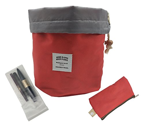Sanrich Travel Pouches With Drawstring Makeup Bags Toiletries Travel Kit Business Trip Bags Organizer Bathroom Storage (Watermenon Red)
