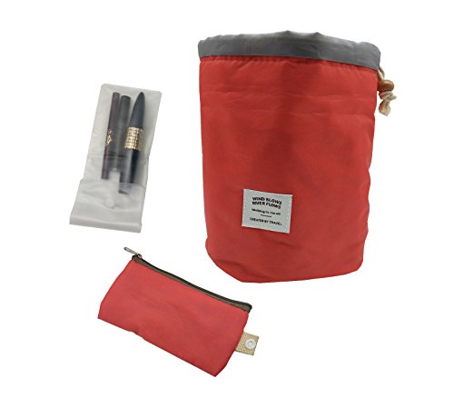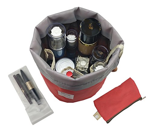 3.Nice carry kit for toiletries makeup bag:fit in the toiletries well. it makes it easier to clean if you drop foundation on it.Super travel friendly and convenient;bathroom pack bags:can pack away bathroom essentials and place in my overnight bag and not have to worry about spills. Also like the small pockets inside which help keep things upright!;This red travel cosmetic bag is a good item for who always outside for travel, trip or vacation or camping.