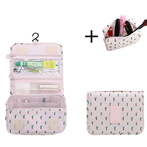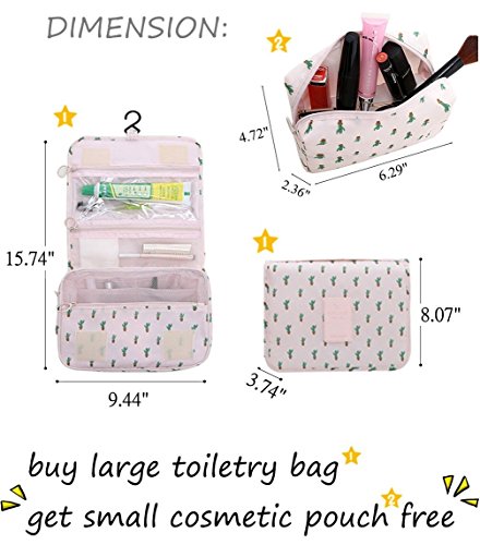 Great Gift Portable Multi-function Makeup Travel Hanging Cosmetic Bag Waterproof Toiletry Kit Wash Cactus Floral Print Organizer(15.74"x9.44"x3.74") + Mini...