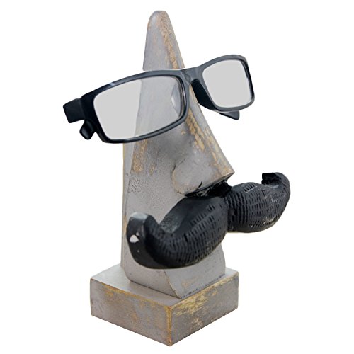 Gifts From India - Wooden Eyeglass Spectacle Holder with an Amusing Mustache for Home Decorative or Office Desk - Color: Gray : Size: 6. 5 x 5.x 3 inches