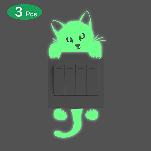 Toeoe 3Pcs Creative Wall Decorative Vinyl Decal Glow in the Dark, Light Switch Decor Removable Skin Sticker, Home Decor Removable Art Mural Baby Nursery Room - Creeping Cat