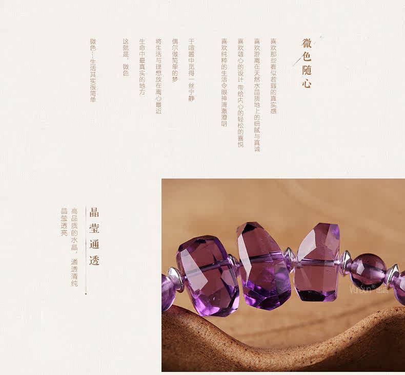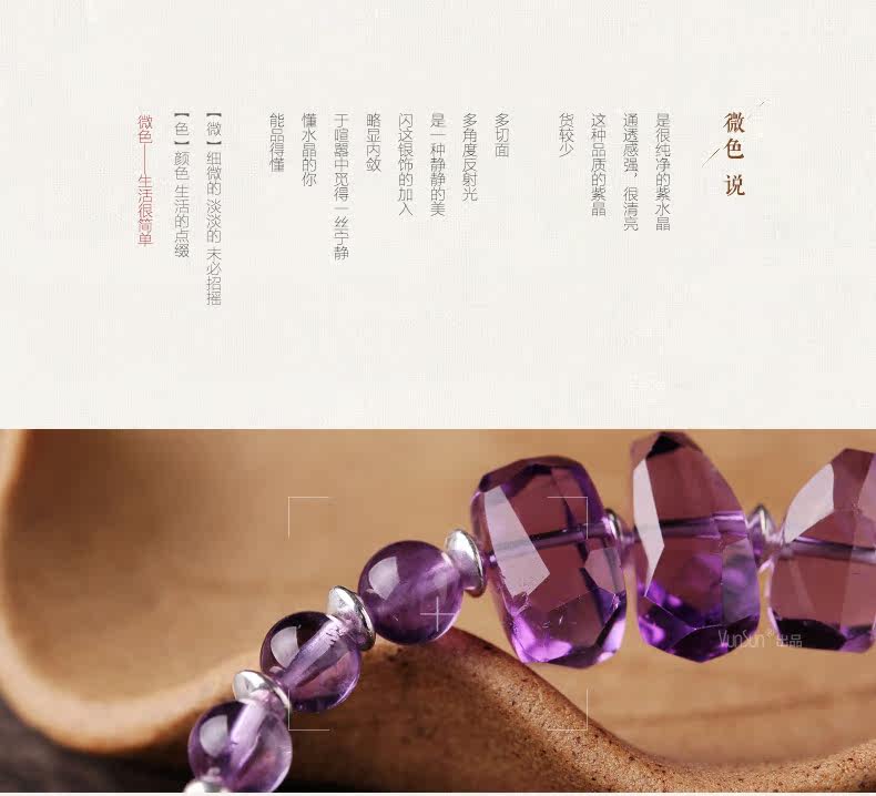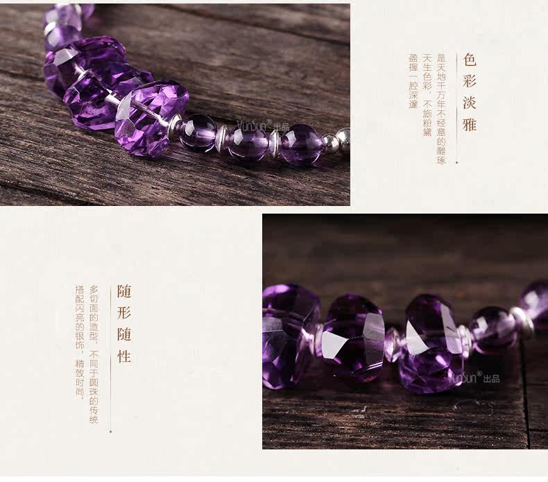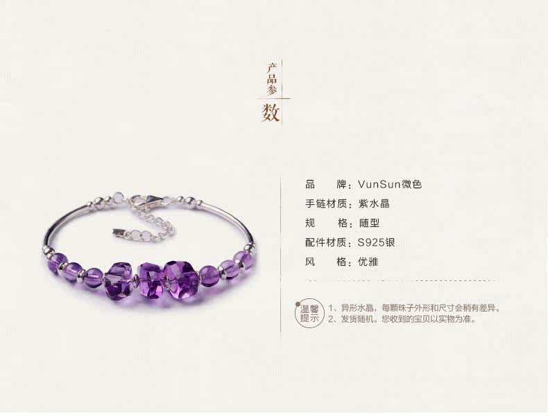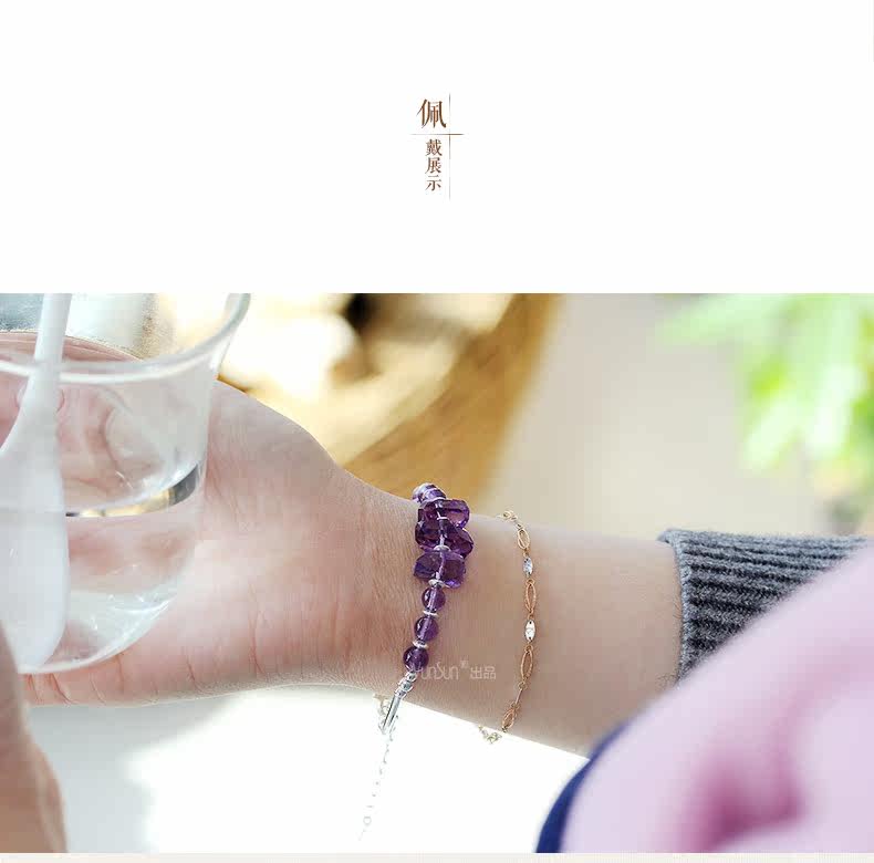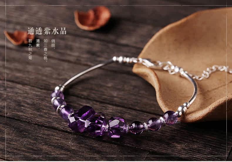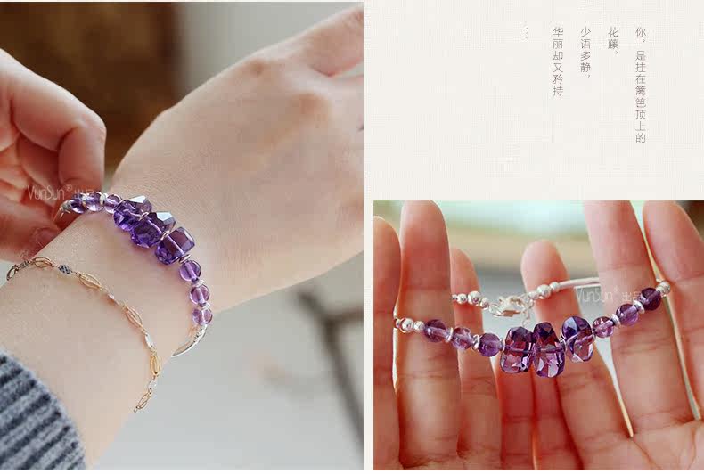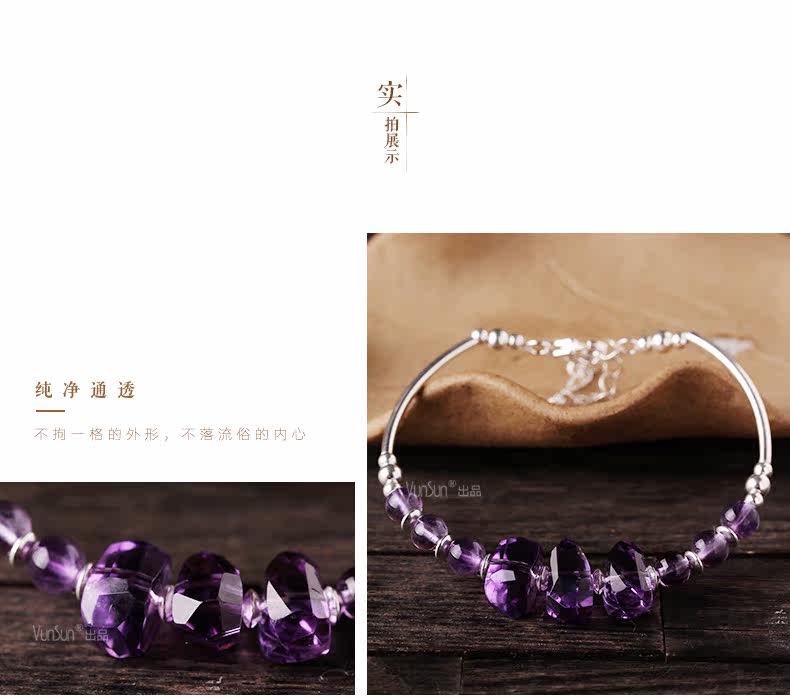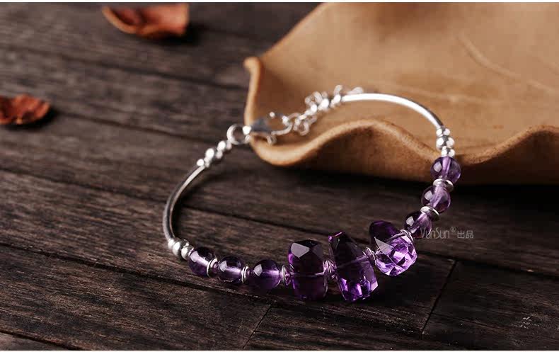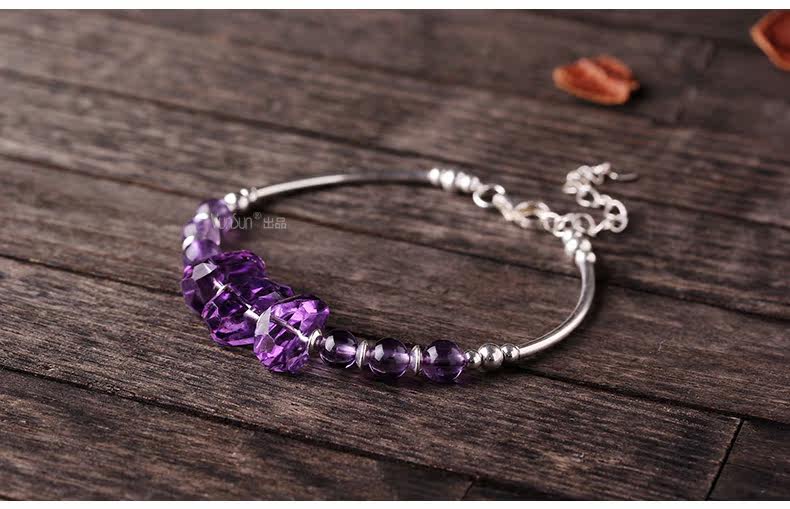 微色天然紫水晶手链女款 单圈切面手串 s925银饰品礼物