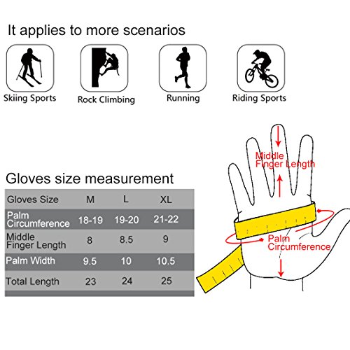 -. Feature : Palm Circumference: 23cm/9 inch Middle Finger Length: 24.5cm/9.6 inch Product Size: 24.5*18cm/9.6*7 inch / Weight: 80g / Breathable, comfortable, wind-stopper, and multi-directional stretch fit / Top grade silicone for anti-slip designed on palm / Adopt soft and windproof fleece composite fabrics inside, makes this glove more durable, comfortable and warm