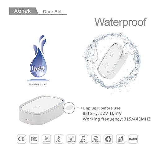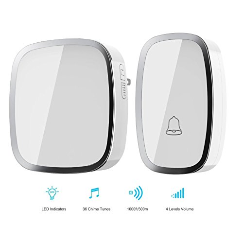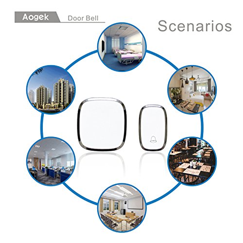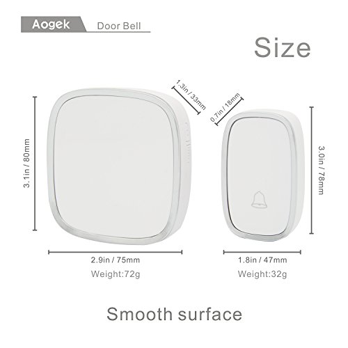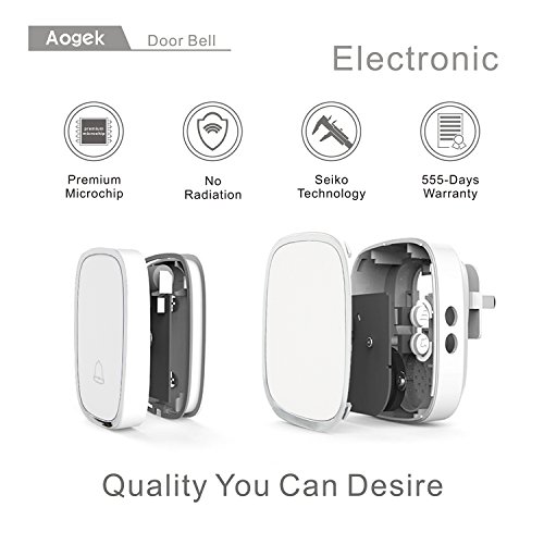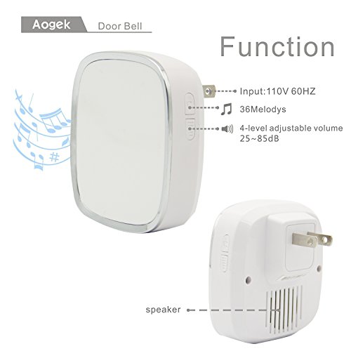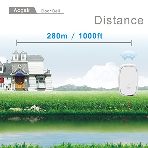 Aogek Wireless Doorbell Kit, 1 Remote Push Button and 1 Door Chime, Operating at over 1000-Feet Range with 36 Chimes, 4-Level Adjustable Volume, White-Silver