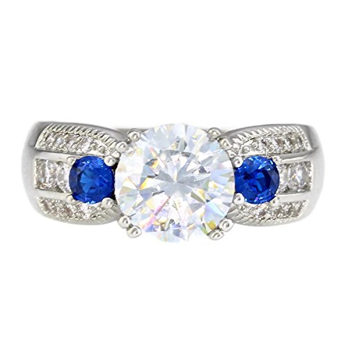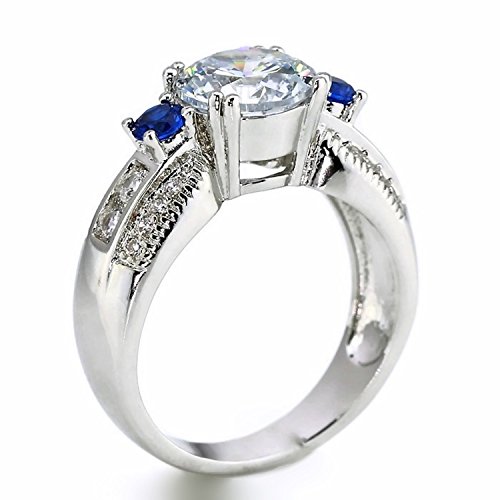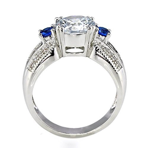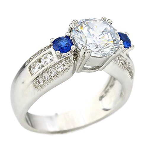 -. Binding : Jewelry -. Brand : Almost Diamonds -. Department : womens -. Feature : MATERIAL: Highest quality AAA+ cubic zirconia stones with created sapphire accents. White gold plated base metal for a high luster finish. We are committed to providing you the highest standard materials and craftsmanship. The stones on this ring set are handset by master craftsmen. / SPECIFICATIONS: A 2 carat round brilliant clear cz stone is at the center, accented by 1/3 carat created blue sapphire side stones. Pave set clear cz stones are on either side of the band. / GREAT VALUE - High-end design at an affordable P.R.Ice. Comes with a FREE velvet jewelry pouch. / 100% SATISFACTION GUARANTEED! - We stand behind every product we sell. If these don't fit or you are unhappy for any reason, send them back for a full refund. -. Label : Almost Diamonds -. Manufacturer : Almost Diamonds -. ProductGroup : Jewelry -. ProductTypeName : FASHIONRING -. Publisher : Almost Diamonds -. Studio : Almost Diamonds -. Title : 3CT Brilliant Clear and Blue Sapphire CZ Cubic Zirconia Engagement Ring