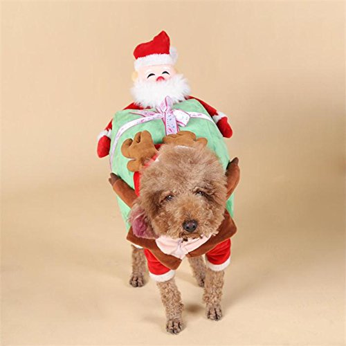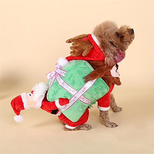 -. Binding : Misc. -. Brand : NACOCO -. Color : Red -. Feature : So adorable pet Christmas costume!The dog is carrying the gift box with santa claus. / Made of cotton material,it is easy for dog to put on or off. / The adjustable velcro fits dog's size. / On Christmas this costumes will bring you more joy.You can record this moment by taking photoes to share your friends. -. Label : NACOCO -. Manufacturer : NACOCO -. PackageQuantity : 1 -. ProductGroup : Pet Products -. ProductTypeName : PET_SUPPLIES -. Publisher : NACOCO -. Studio : NACOCO -. Title : NACOCO Dog Costume Carrying Gift Box with Santa Claus Pet Cat Costumes Funny Christmas Party Festival Holiday Outfit