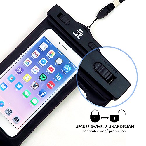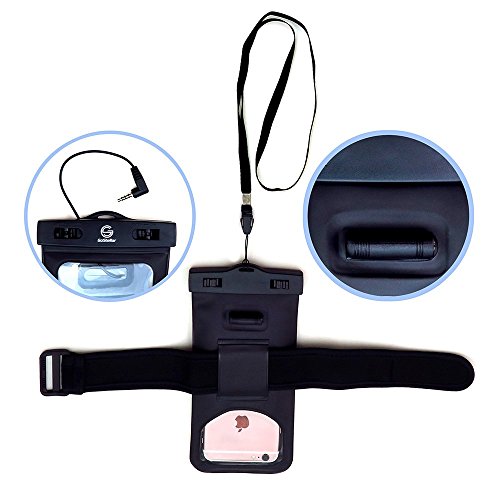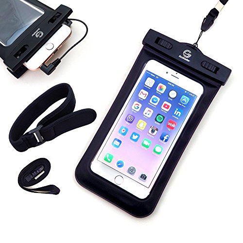 Universal Waterproof Dry Bag Case (Floatable) for iPhone 6 Plus, and other Smartphone Devices - Armband + Headphone Jack + Lanyard (Neck Strap) - Protects from Water/Snow/Dust/Dirt