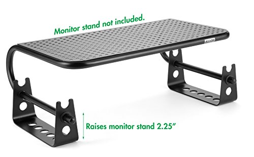 Raises monitor stand height by one, two, or three inches to achieve an optimal ergonomic viewing angle