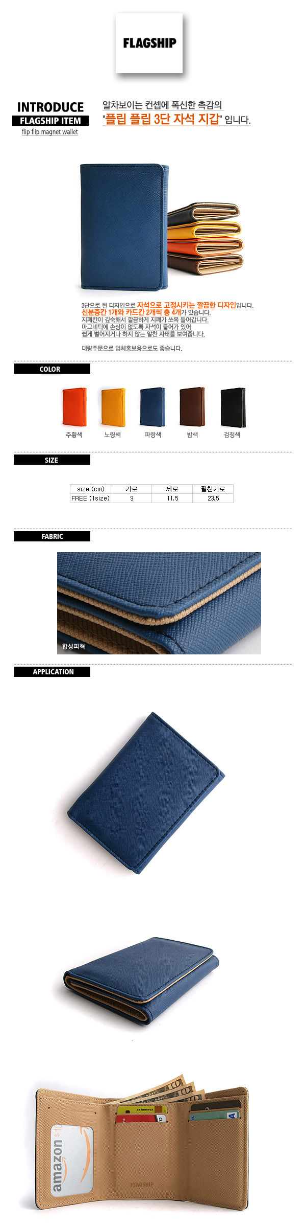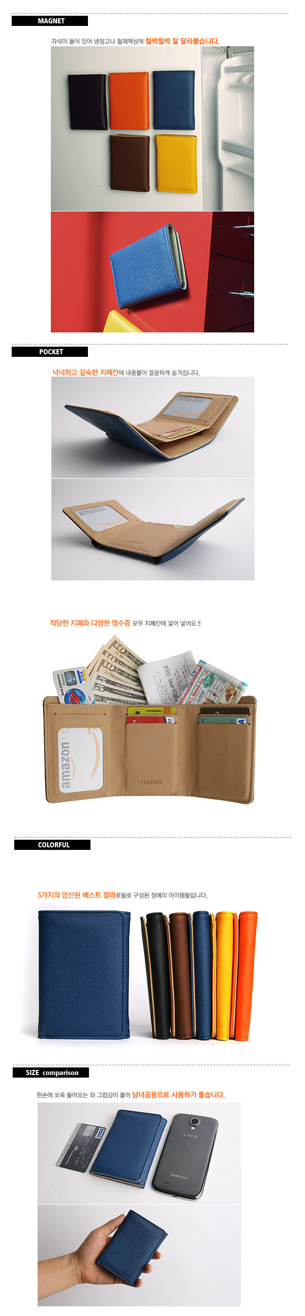 상품명 : 플립 플립 3단 자석 지갑 [5컬러]