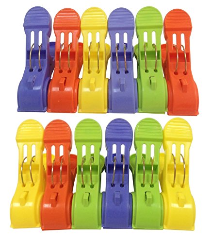 Attmu 12 Pack Beach Towel Clips Chair Clips Towel Holder in Fun Bright Colors - Stop the Towels from Blowing Away