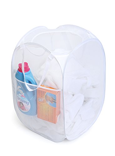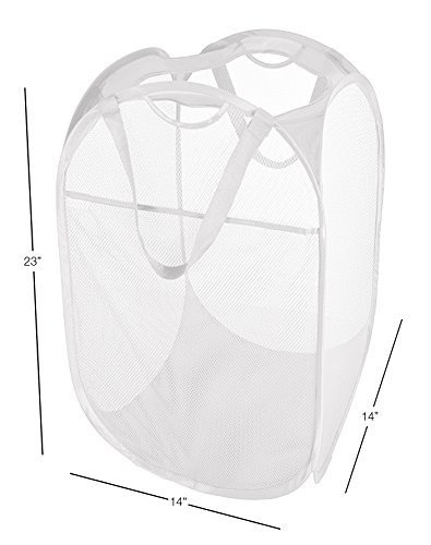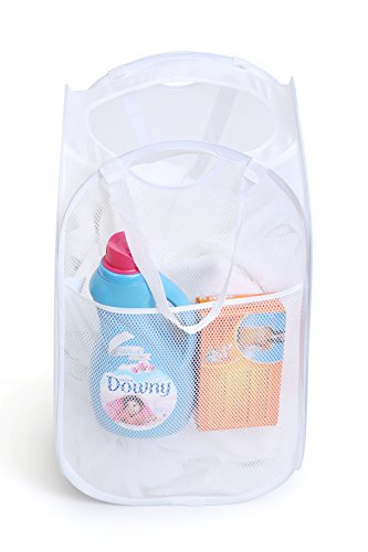 PRO-MART DAZZ Deluxe Mesh Pop-Up Laundry Hamper with Side Pocket and Handles, White