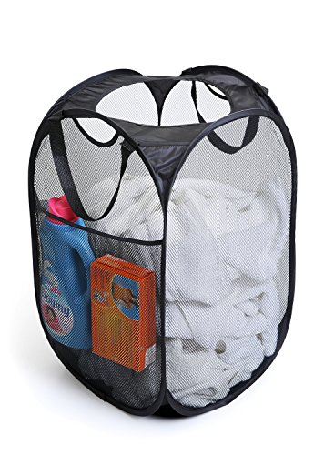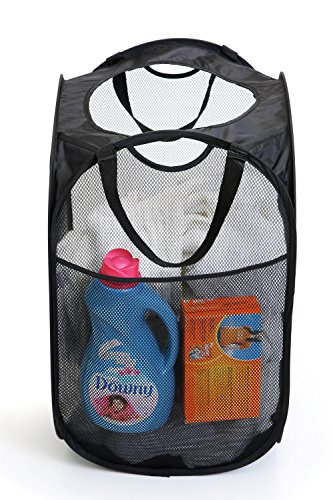 PRO-MART DAZZ Deluxe Mesh Pop-Up Laundry Hamper with Side Pocket and Handles, Black