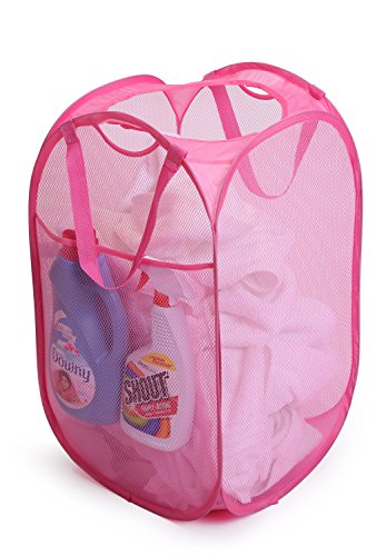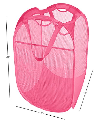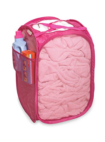 PRO-MART DAZZ Deluxe Mesh Pop-Up Laundry Hamper with Side Pocket and Handles, Pink