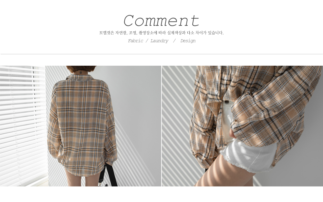 MD COMMENT 박시한 핏과 가벼운 소재로 부담없이 즐길 수 있는 셔츠에요~~ 세련된 체크패턴으로 데일리한 아이템이랍니다!
