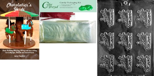 Cybrtrayd Small Sled Chocolate Mold with Chocolatier's Bundle of 25 Cello Bags, 25 Red Twist Ties and Chocolatier's Guide