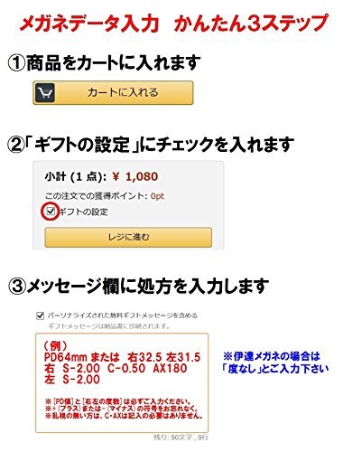 -. Feature : レンズセットを購入いただく際の度数の入力については、ギフトコメントの機能をご利用ください。詳細は商品画像をご覧ください。