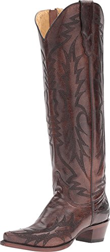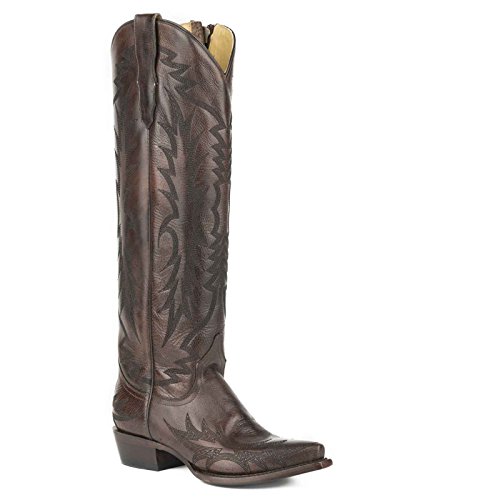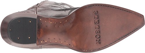 Binding : Apparel Product Description You will love the streamlined, feminine look of the Stetson® Riley boot. Leather upper features intricate Western stitching throughout boot. Durable leather side pull strap. YKK side zipper allows for easy on and off. Smooth leather lining. Single welt construction. Lightly cushioned comfort insole for all-day support. Snip toe. Stacked heel. Leather outsole with lemonwood peg and brass nail construction for durability and long-lasting wear. Imported. Measurements: Heel Height: 1 1?2 in Weight: 1 lb 10 oz Circumference: 15 in Shaft: 19 in Product measurements were taken using size 7.5, width B - Medium. Please note that measurements may vary by size. 0