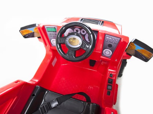 - Feature : 2 x Rechargeable 6V 10Ah Batteries (12V output) .2 x 12V Motors . / Forward and Reverse .Up 3 MPH .Plastic Tires with Rubber Traction Strips . / Length: 42", Width: 26" .Remote Control Included .Functioning Headlights . / Perfect For 2-4 Years Of Age .Weight Capacity of 66 Lb . NEW 2014 MODEL RED. / Adjustable Seat Belt .Foot Pedal Accelerator .12V Charger Is Included .