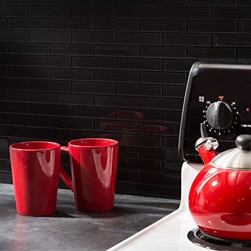 Aspect Peel and Stick Backsplash 12.5in x 4in Subway Ebony Matted Glass Tile for Kitchen and Bathrooms (3-pack)