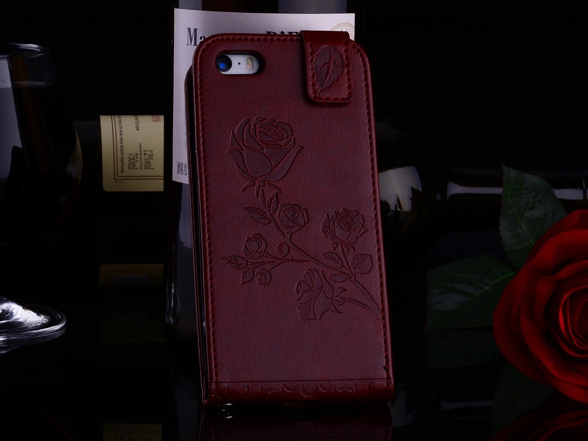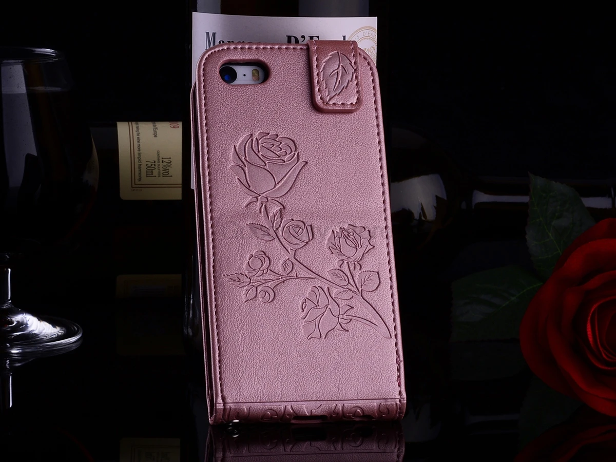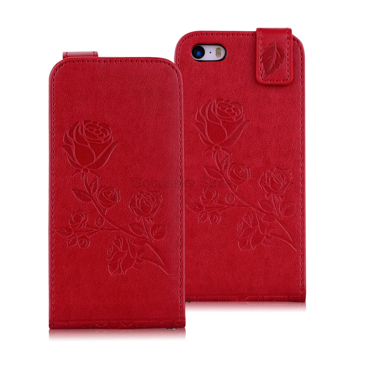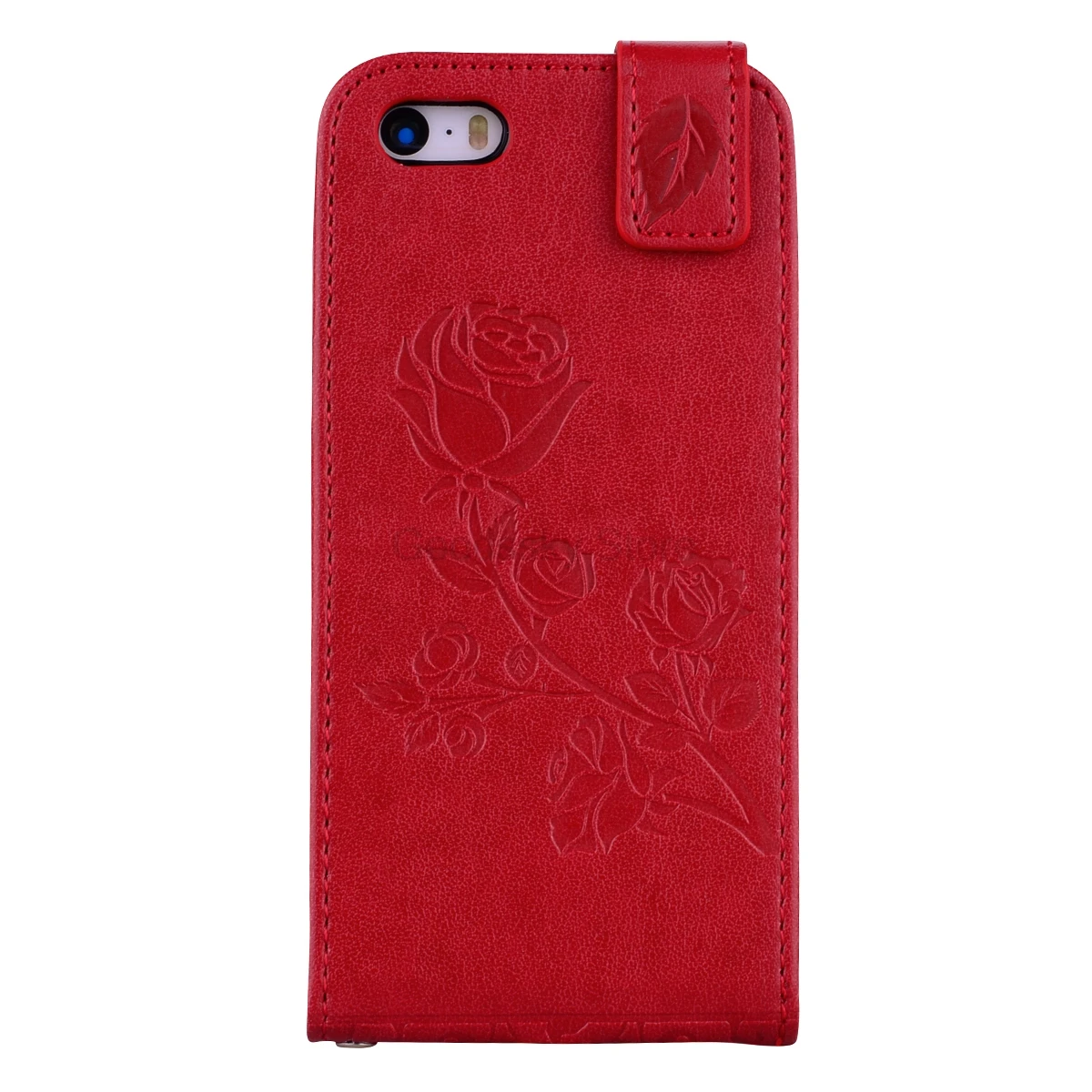 垂直フリップpuレザー財布ケースのためのiphone 5 s 5 s seレトロバックカバー3dエンボスローズフラワー電話バッグケース高級coque