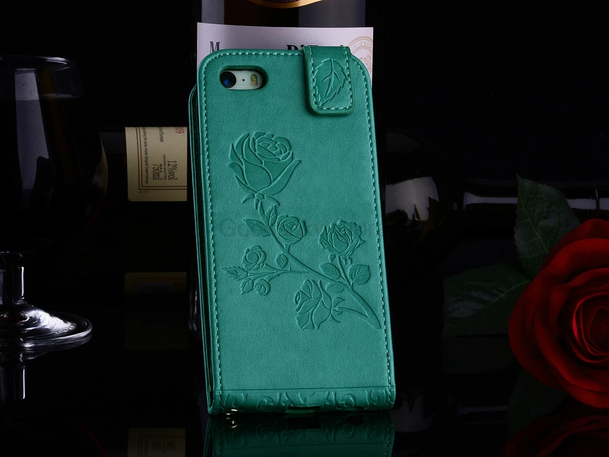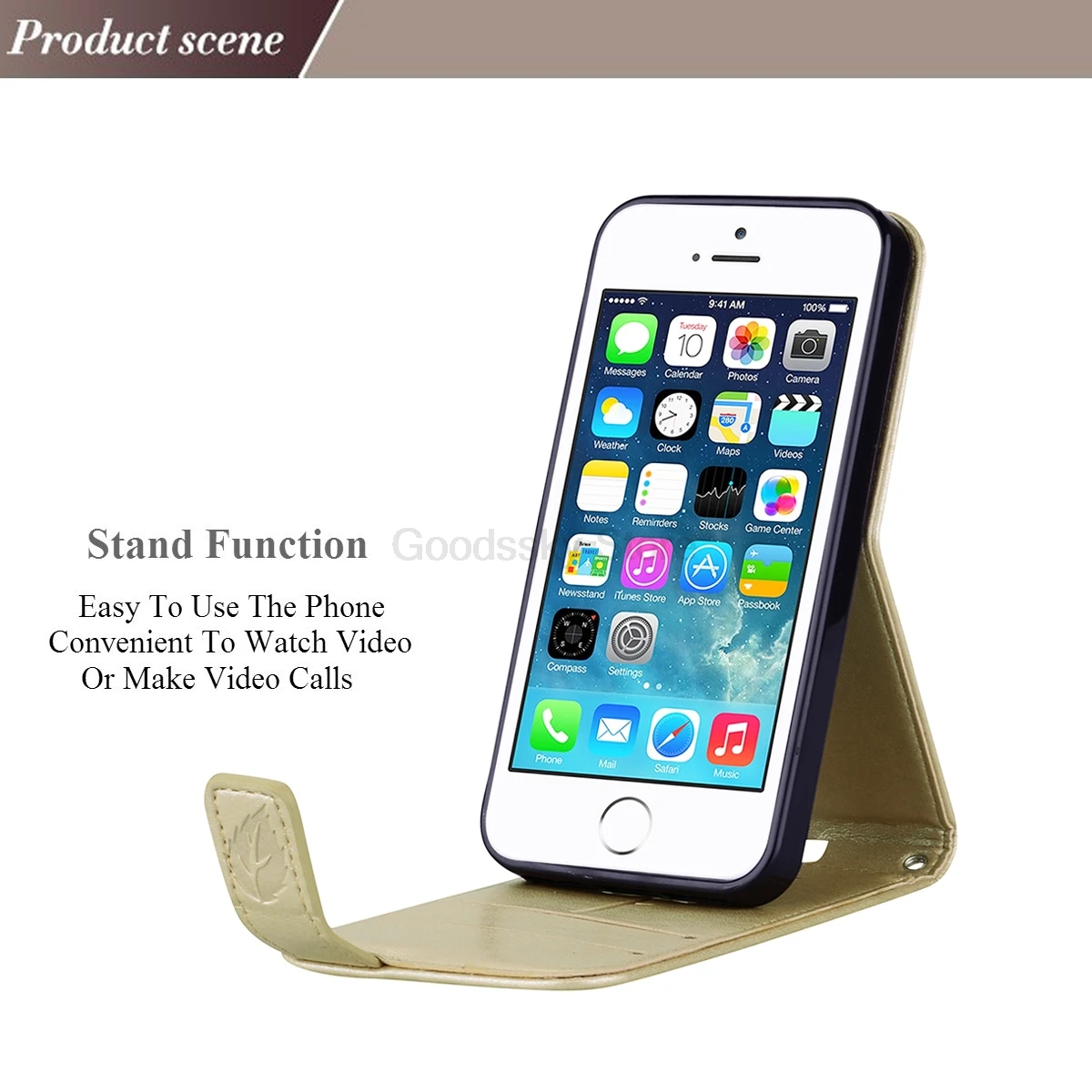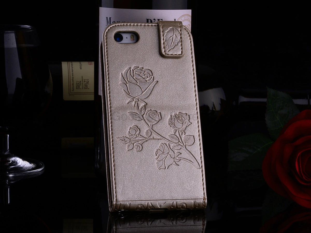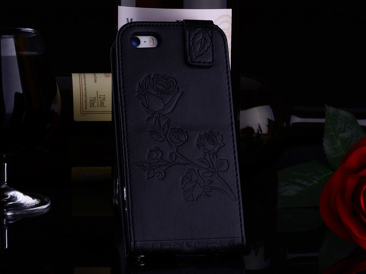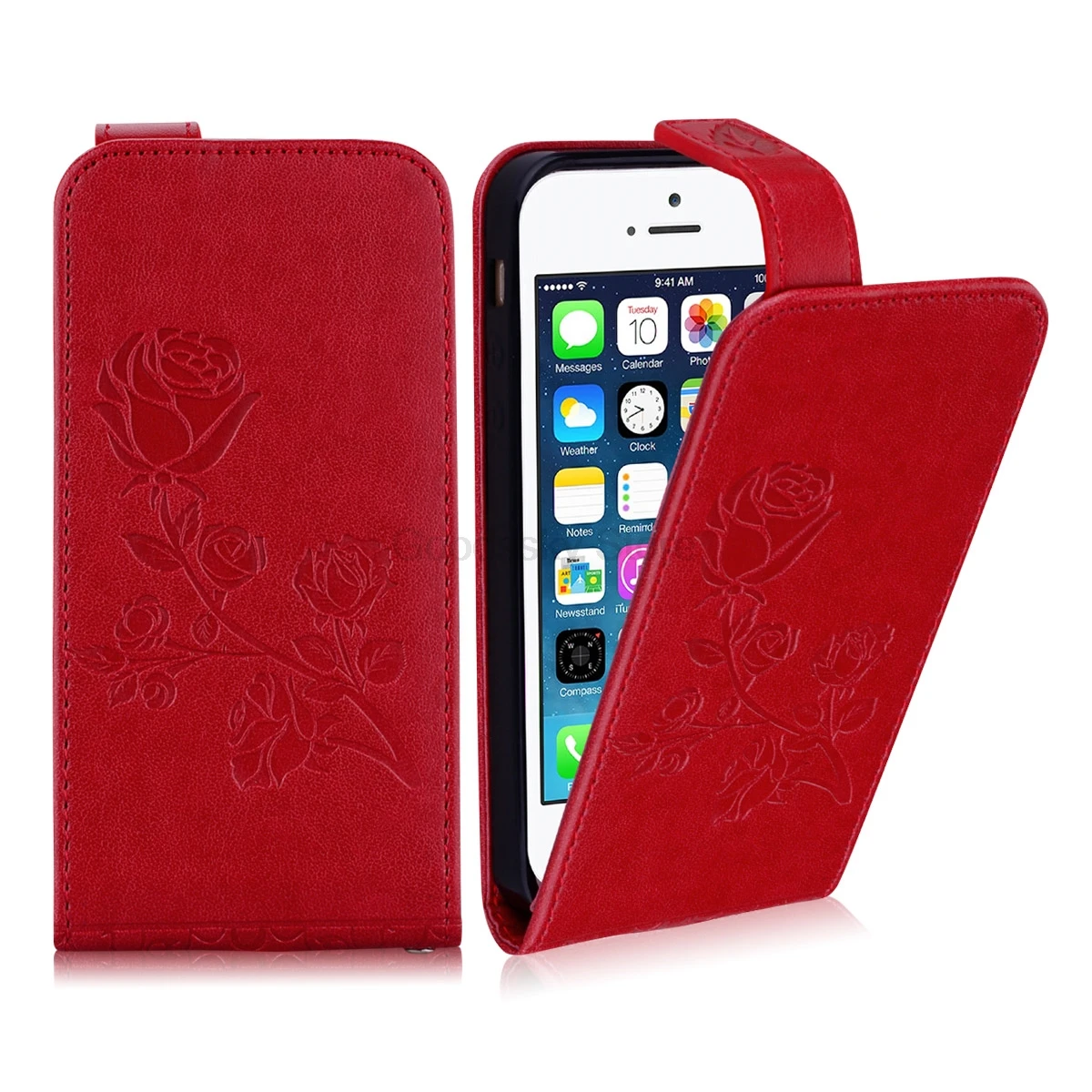 垂直フリップpuレザー財布ケースのためのiphone 5 s 5 s seレトロバックカバー3dエンボスローズフラワー電話バッグケース高級coque