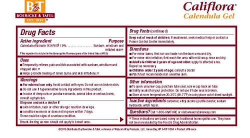 -. Binding : Health and Beauty -. Brand : Boericke & Tafel -. EAN : 4607028980626 -. Feature : Great for cuts, wounds and abrasions / Safe and Effective / Topical Gel -. IsAdultProduct : 0 -. IsAutographed : 0 -. IsMemorabilia : 0 -. Label : Boericke and Tafel -. LegalDisclaimer : Actual product packaging and materials may contain more and different information than what is shown on our website. We recommend that you do not rely solely on the information presented and that you always read labels, warnings, and directions before using or consuming a product. Please see our full disclaimer below. -. Manufacturer : Boericke and Tafel -. Model : 21825197 -. MPN : 54686 -. NumberOfItems : 1 -. PackageQuantity : 1 -. PartNumber : 54686 -. ProductGroup : Health and Beauty -. ProductTypeName : HEALTH_PERSONAL_CARE -. PublicationDate : 2015-01-07 -. Publisher : Boericke and Tafel -. ReleaseDate : 2015-01-04 -. Size : 2.75 OZ -. Studio : Boericke and Tafel -. Title : Boericke & Tafel - Califlora Calendula Gel -. UPC : 308078251974