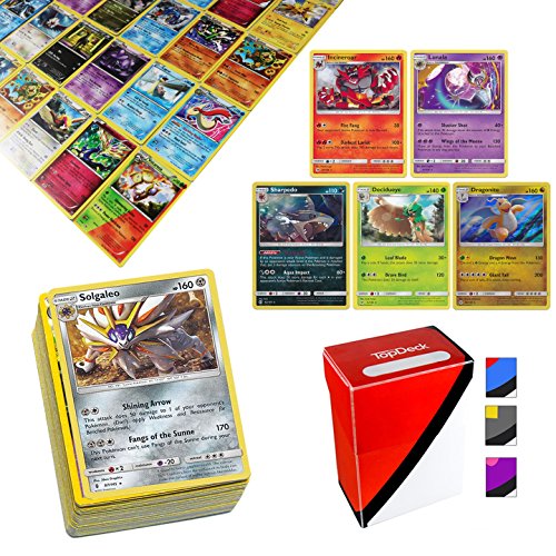 -. Binding : Toy -. Brand : Assortmart -. EAN : 0643380638663 -. Feature : ⭐ 100 POKEMON CARDS: Pokemon fans will go bonkers over this awesome assortment of pokemon cards! / ⭐ PLUS 5 HOLO RARE CARDS: Every lot also comes with 5 holo/reverse holo rare cards for ! / ⭐ PLUS A PREMIUM TOPDECK DECK BOX: Protect your cards with your limited edition Pokemon inspired TopDeck Deck Box, included in every lot! / ⭐ ALL CARDS 100% AUTHENTIC: All cards come directly from 100% authentic Pokemon booster packs. / Listing custom bundled by Assortmart. All trademarks and copyrights belong to their original respective manufacturer. -. IsAdultProduct : 0 -. Label : Assortmart -. Manufacturer : Assortmart -. ProductGroup : Toy -. ProductTypeName : TOYS_AND_GAMES -. Publisher : Assortmart -. Studio : Assortmart -. Title : 100 Pokemon Cards with 5 Holo Rare Cards and TopDeck Deck Box -. UPC : 643380638663