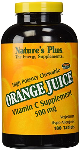 Orange Juice C 500mg by Nature's Plus 180 Chewable Orange Juice C 500mg 180 Chewable Product There's a reason why Vitamin C is the most well-known and highly regarded vitamin in the world This antioxidant affects many of the body's systems including the vascular system and natural defenses. These tangy and delicious chewables are a delightful source of daily Vitamin C. Suggested Use As a dietary supplement chew one tablet daily - Or as directed by your healthcare professional. Supplement Facts Serving Size 1 Chewable Tablet Servings Per Container 180 Amount Per Serving Daily Value Calories 10 Total Carbohydrate 2 g 1 Sugars 2 g Vitamin C (as ascorbic acid) 500 mg 833 Percent Daily Values are based on a 2 000 calorie diet Other Ingredients Fructose natural orange flavor magnesium stearate silica beet juice natural color natural orange juice pulp orange juice crystals orange exocarp lemon bioflavonoids (from Citrus limon fruit) rutin hesperidin acerola cherry (Malpighia glabra fruit) ro