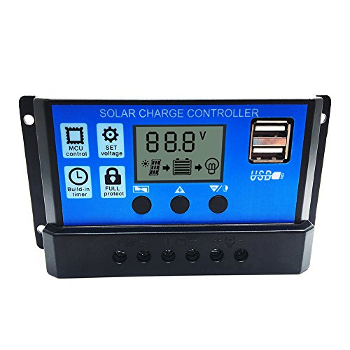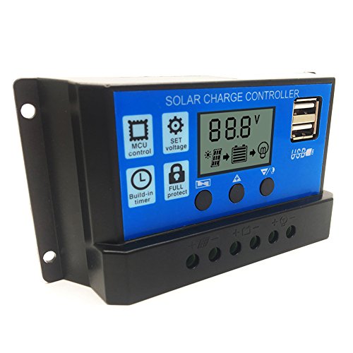 Solar Charge Controller,soled 20A Solar Charge Controller Solar Panel Battery Intelligent Regulator with Dual USB Port Display 12V-24V