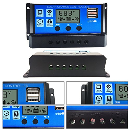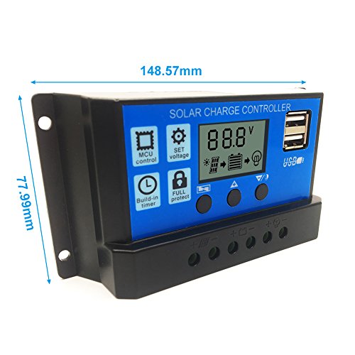 ★ Rated Discharge Current: 20A; USB Output Voltage: 5V/3A; Battery Voltage: 12V/24V auto. Adjustable power rate with dual USB ports; 4-Stage(EQU, Bulk, ABS, Float) charge management and 4-Stage PWM charge