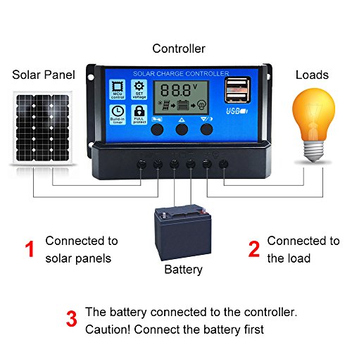 ★ This Solar Charge Controller can monitor the real-time currency, volt and electricity output volume statistics. Everything can conveniently be read from the LCD display screen