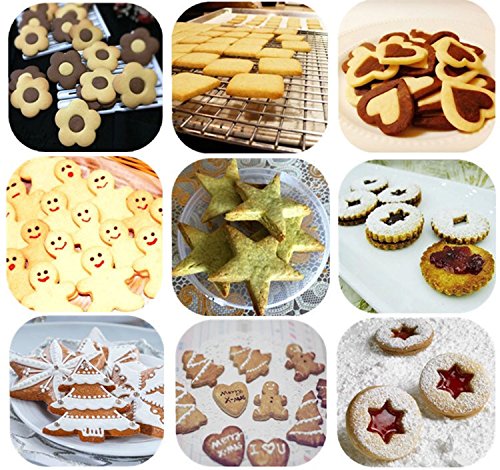 Adecco LLC 37PCS Cookie Cutter Set, Biscuit Cutter Set, Multi-size Sandwich Fondant Cake Fruit Vegetable Shapes Cutter Set Round, heart, flower, square, Christmas tree, star & gingerbread man.