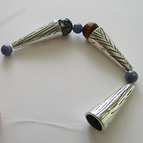 Heather's cf 22 Pieces Silver Tone Long Beads Caps Findings Fit 6-8mm Round Beads Jewelry Making 28X10mm