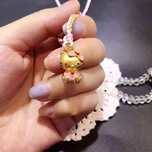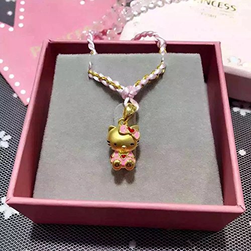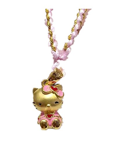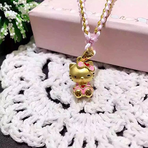 24K Fine Gold 3D Hello Kitty in Pink Dress Pendant with Pink Cord Necklace