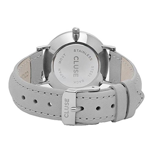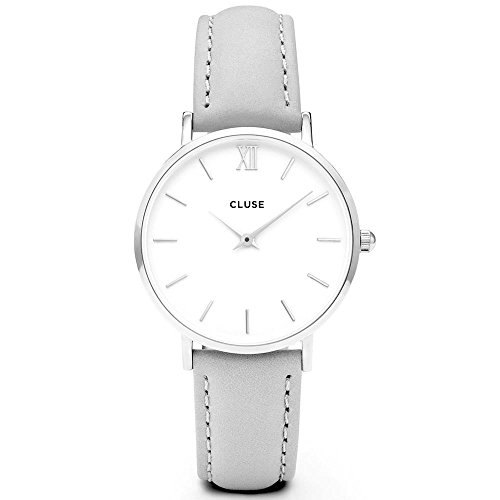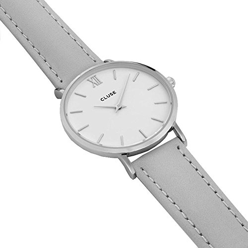 Cluse Women's Minuit 33mm Grey Leather Band Metal Case Quartz White Dial Analog Watch CL30006
