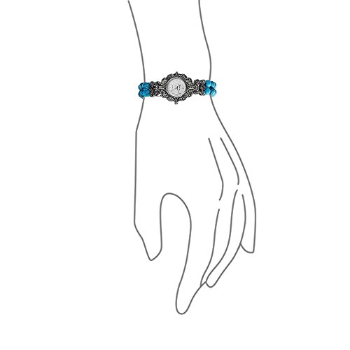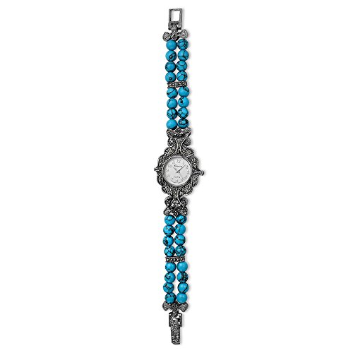 This everlasting vintage style, turquoise beaded watch, is accentuated by marcasite stones that surround white dial, giving it a vintage look. It's silver-tone, hour numbers and hands give this watch a modern feel. It's the perfect watch to add a burst of color to any ensemble.