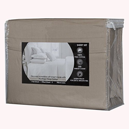 Spark Comfort Idyllic 100% Soft Pima Cotton Sheet Set 350 Thread Count 4 Piece Fitted Deep Pocket Full Size in Cobblestone