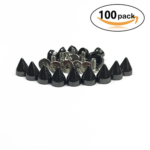 100pcs Cone Spikes Screwback Studs DIY Craft Cool Rivets Punk Stud Hex Cone Style 7x9mm 1/4"x3/8" (Gun Black)