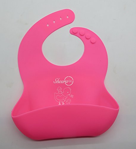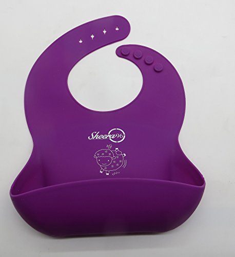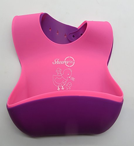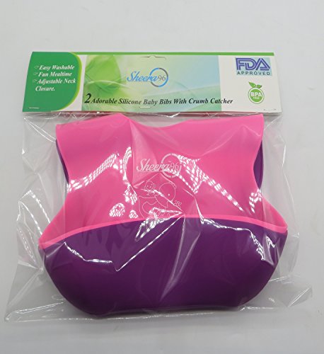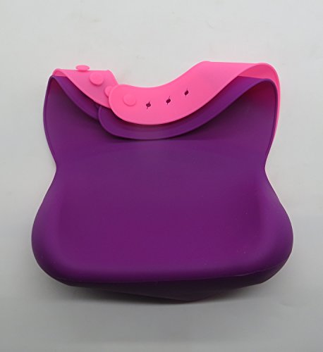 Adjustable Soft Silicone Baby Bibs With Crumb Pocket Catcher, Waterproof Set, Stain Risistant wipes Clean. Set of 2 Pack, 2 colors (Pink / Purple)